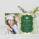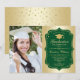 Festa de formatura com sua foto. Apresenta fontes de script, tassel e confetti. Design verde elegante com ouro brilhante. Perfeito para uma celebração elegante.