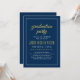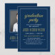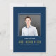 Celebre seu graduado com estilo com este convite de festa de formatura moderno em azul marinho e dourado, apresentando um layout ousado de foto de formatura. Personalize a foto, o nome do graduado, o ano de formatura e a escola para um visual sofisticado que parece clássico e atemporal. O verso inclui um formato limpo e fácil de ler com os detalhes da festa, como data, hora, local e RSVP. Ideal para celebrações de formatura do ensino médio ou faculdade e festas de casa aberta.