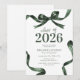 Celebre o marco do seu graduado com uma elegância incomparável! Nossos convites de festa de formatura 'Turma de 2026' de alta qualidade combinam um fundo branco atemporal com uma borda de laço e fita verde em estilo aquarela moderno. Juntamente com um modelo de texto personalizável, esses convites são uma maneira linda de comemorar esse evento que muda a vida.