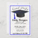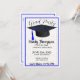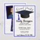 Os convites modernos de formatura apresentam uma borla azul-marinho no chapéu de formatura preto e são adornados com uma faixa azul-marinho com brilho dourado e um fundo branco. A parte de trás do convite é branca com brilho dourado e há espaços reservados para duas das suas fotos favoritas do formando. As fotos são adornadas com uma moldura azul-marinho e há uma faixa azul-marinho em torno da borda. Esses convites de festa são perfeitos para os formandos cujas cores da escola são azul-marinho.