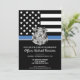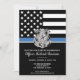 Honre a dedicação e o trabalho de duro de um novo oficial de polícia com este convite de formatura policial personalizável. Apresentando um [crachá policial e a bandeira da polícia com riscas brancas e pretas e uma orgulhosa linha azul fina, esta design simboliza força, serviço e sacrifício. O convite é personalizado com o nome e os detalhes da festa do formando, fazer-o como uma lembrança memorável para amigos, familiares e colegas oficiais. Perfeito para celebrar a graduação, promoção ou marco de uma academia de polícia na carreira de um futuro oficial. Convide seus convidados em estilo e mostre suporte para o membro mais novo da comunidade de linha azul fina.