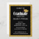 Design simples e moderno, com boné de formatura dourado brilhante, tassel cor-de-rosa brilhante e texto branco. Fundo preto e bordas brilhantes douradas. Perfeito para um convite de festas ou formandos. Personalize este produto adicionando o nome do formando e as informações da parte. Se precisar de ajuda para adicionar texto, por favor, sinta-se à vontade para me contactar. Ficarei feliz em ajudá-lo.