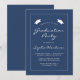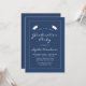 Este convite clássico e moderno para festas de formatura apresenta texto branco em uma borda retangular branca fina sobre um fundo azul marinho. A palavra "Graduação" e o nome do formando aparecem em letra casual moderna, sob um par de bonés de conselho de argamassa branca. Personalize o convite com detalhes da parte. A parte traseira da placa é azul marinho estável.