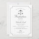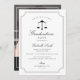 Um elegante cartão de convite para a graduação de quadros de vintage, com cores pretas e brancas e um símbolo da Faculdade de Direito. Os detalhes do texto e a imagem podem ser personalizados.
