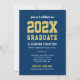 Celebre a turma de 2026 com este convite de formatura varsity na cor azul marinho e dourado, apresentando um título com o ano em destaque e um layout moderno e limpo. Personalize o nome do formando, escola, data, hora e detalhes de confirmação de presença. O verso inclui um layout de foto coordenado com “turma de 2026” para um visual sofisticado e de dois lados.