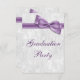Os elegantes e personalizados convites para comemorações de festa de formatura branca e falsa arco para raparigas/mulheres. Linda cor damasco branca com arcos e fitas bonitas, bonito, púrpuras na moda/lilás/lavandas. Estes glamourosos, clássicos, convites para a sua universidade, faculdade, segundo grau, mais velho são decorados/impressos em ambos os lados. Lindos, modestos, femininos e chiques para formandos de meninas. Classe de 2014, 2015, 2016, 2017, 2018, 2019, 2020, 2021, 2022, 2023, 2024, etc.