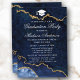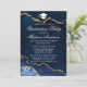 Convite para Festa de formatura de Geodo de Águas Elegante Azul e Dourado Marble Agate