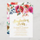 Convites de festas de formando elegantes com fundo branco clássico, um monitor floral cor-de-rosa bonito e vermelho-d-água, um título tipográfico de folha de ouro na moda faux e um modelo moderno do formando.