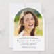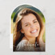 Celebre seu formando com um convite festa de formatura elegante em forma de arco, com sua foto sobreposta com "formando" em uma escrita na moda branca com baloiços e seu nome, ano escolar e de aula em tipografia branca moderna. Adicione uma segunda foto no verso e personalize seus detalhes de festa de formatura.