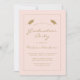 Este convite clássico e moderno para festas de formatura apresenta o texto dourado numa borda retangular em ouro fina sobre um fundo cor-de-rosa pincelado. A palavra "Graduação" e o nome do formando aparecem em letra casual moderna, sob um par de bonés de conselho de argamassa de ouro. Personalize o convite com detalhes da parte. A parte traseira da placa está com um pincel sólido.