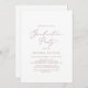 Este delicado convite para a festa de formatura da caligrafia em ouro-rosa é perfeito para uma festa moderna ao ar livre. A design romântica minimalista apresenta uma magnífica e elegante tipografia cor-de-rosa rosa, empoeirada, num fundo branco, com um aspecto simples e limpo.