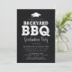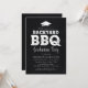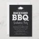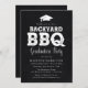 Convite para festa de formatura russo de churrasco com um boné de formatura no topo e uma inscrição no quadro com fundo preto de quadro negro. Personalize o convite de festa de formatura do quadro com o nome do formando e os detalhes da parte. Os convites são perfeitos para festas segundos graus e formandos!