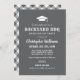 O convite de festas "CHURRASCO de quintal" apresenta um motivo de boné de formatura, texto personalizado na moda em fontes rústicas e modernas, um deslocamento e designs de padrão de xadrez e texto branco. A cor de fundo da cinza pode ser personalizada. Perfeito para uma festa de formatura casual de verão ao ar livre.