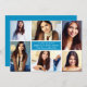 Anuncie seu formando em estilo mostrando suas fotos de mais velho favoritas neste design de placa de colagem de fotos. Personalize o texto no verso do cartão para convidar a família e os amigos para uma festa de formatura para celebrar a ocasião. A cor azul-lacrimejante pode ser personalizada para corresponder às cores da escola ou da foto.