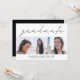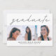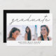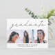 modelo de cartão de anúncio de graduação moderno e simples para formandos de segundo grau ou de faculdade! Preto e branco com colagem de fotos quadradas com texto no topo que diz "formando" na escrita moderna. Personalize este produto adicionando o nome do formando, a escola, a data de conclusão. No verso, ele diz "parabéns" e você pode adicionar os detalhes da festa abaixo. design elegante e de tendências para os minimalistas.