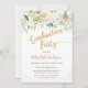 Flores de aquarelas em tons de branco e verde com sotaque de ouro e convite de festa de formatura de confetti. Verifique a coleção (veja o link abaixo da imagem principal) e entre em contato com o designer para solicitar itens não mostrados.