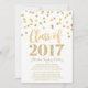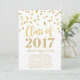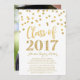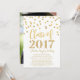 Festa de formatura convite personalizado classe de cartão com fotos de 2017 em um padrão de configuração de efeito glamoroso de brilho dourado e texto moderno de estilo escrito à mão.