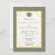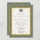 Estilo elegante clássico sábio verde e festa de formatura branca com um quadro geométrico dourado e chapéu de formando.