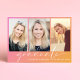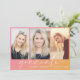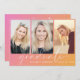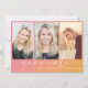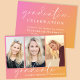 Convite de festa de formatura de tendências com um fundo de gradiente cor-de-rosa a laranja, três fotos do formando, "formando" em uma escrita branca-chic e seu nome e ano de classe em uma simples tipografia branca moderna. Adicione os detalhes da sua festa no verso.