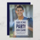 Marinho moderno preto Azul e Branco Convite para Festa de formatura Masculina. Design de Sobreposição de Tipografia Negrito com Foto. Convite festa de formatura para ele com um simples design. Design perfeito e flexível para formando de segundo grau, formando universitário ou formandos universitários. Adicione as informações, o nome e outros detalhes da sua parte. Design por Elke Clarke © Outras cores ou cores de fundo disponíveis.