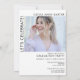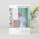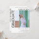 Anunciamento de dois graus de fotografia minimalista moderno e Formando o Convite de festas com texto preto sobre fundo branco. O verso tem áreas personalizáveis para adicionar informações sobre a parte ou detalhes adicionais do lançamento.