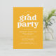 Os convites para festas de formatura de na moda com "formando party" exibidos em letras brancas em negrito com o nome do formando e os detalhes da parte mostrados abaixo em um plano de fundo amarelo. A parte traseira do convite para festa de formatura amarela apresenta a foto vertical do formando. Os convites simples para festas de formatura são perfeitos para formandos segundos graus e universitários.