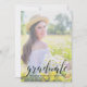 Convite para festa de formatura de fotos elegante com design de folha botânica bonito no verso. <i>Fotografia https://pixabay.com/en/users/jill111-334088/?tab=about</i>