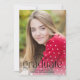 Esse cartão de graduação minimalista apresenta tipografia de tendências e uma grande foto. Na frente, o "Formando" é escrito em letras negras únicas com grande florescimento. O ano de graduação é colocado dentro do florescimento, e o nome do formando e da escola estão abaixo. O design de tipografia cobre uma grande foto vertical. A parte traseira da placa de graduação inclui uma modelo para adicionar detalhes da festa de formatura.