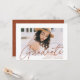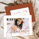 Convide convidados para comemorar a formatura com nossos convites para festa de formatura de fotos modernos. Os convites da festa de formatura de tendências apresentam a foto do formando com "Formando" em uma cobertura de roteiro de caligrafia moderna marrom do terracotta. Personalize a frente dos convites adicionando o nome do formando, o nome da escola e o ano de graduação. O convite reverte para exibir seus detalhes de festa de formatura e um padrão geométrico trendy e pontilhado branco.