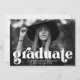 Convites de festa de formatura em negrito com a foto horizontal do formando com "formando" em letras brancas em negrito. Personalize os convites para festa de formatura de fotos adicionando o nome do formando, o ano de graduação e a escola. A festa de formatura branca e preta convida ao contrário para exibir os detalhes da sua festa.