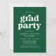 Os convites para festas de formatura de na moda com "formando party" exibidos em letras brancas em negrito com o nome do formando e os detalhes da parte mostrados abaixo em um plano de fundo verde. A parte traseira do convite para festa de formatura verde apresenta a foto vertical do formando. Os convites simples para festas de formatura são perfeitos para formandos segundos graus e universitários.