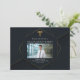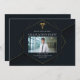 Este convite para festas de formatura de escolas de medicina chic apresenta um design de hexágono geométrico dourado com um caduceus médico elegante acima de uma fotografia do formando. A celebração de fotos a olho moderno convida a um novo médico ou enfermeiro em 2025.
