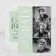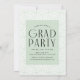A festa de formatura de tendências convida a apresentar três fotos do formando localizadas à direita do design em um layout vertical. O "Formando" é apresentado em caracteres brancos, modernos de arte, com um fundo verde de menta. Personalize o convite para festa de formatura de fotos moderno, adicionando o nome do formando, o ano de graduação e o nome da escola. A design reverte para exibir os detalhes da festa de formatura com um fundo geométrico verde e branco da casa da moeda. Perfeito para segundos graus e formandos!