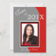 Duas cinzas com tonalidades e fundo vermelho brilhante com um design de onda é a configuração para a foto do seu formando moldada em vermelho, preto e branco correspondente. No topo está o Ano da Classe em branco, e seu nome está em um roteiro branco abaixo da fotografia. A parte de trás do convite é uma cinza consistente com bastante espaço para o seu texto personalizado. Este anúncio de graduação ou convite de festas é especialmente apropriado para aqueles cuja cor escolar é vermelha. Também funciona bem para formandos masculinos ou femininos. Brilhante, dramática e colorida!