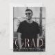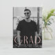 Convites simples de festa de formatura com a foto vertical do formando com "Formando", mostrados em tons roxos, modernos, com a inscrição em deco. Personalize a frente do convite para festa de formatura de fotos, adicionando o nome do formando, a escola e o ano de formando. O convite reverte para exibir os detalhes de sua parte com um plano de fundo geométrico branco e embebido.