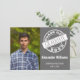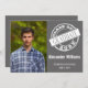 Um simples e moderno convite de festa de formatura com texto branco dentro círculo como um selo, que lê "classe de" e o ano de graduação, em fundo de cinza. Adicione a foto do formando, o nome, o ano e as informações da parte traseira do cartão. Este convite é excelente para uma parte segundo grau ou formandos. Outras cores de fundo também estão disponíveis em nossa loja.
