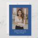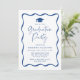 Celebre seu formando com este convite para festa de formatura na moda, apresentando um boné de formatura clássico no topo e "Festa de formatura" mostrado elegantemente em um roteiro azul moderno em um fundo branco. O nome e os detalhes da parte do formando são emoldurados por uma borda azul-escura, acrescentando um toque retroativo exclusivo ao design. O verso mostra a foto do mais velho do formando com espaço para o seu nome, escola e ano de graduação, criando uma manutenção personalizada. Perfeito para formandos segundos graus ou universitários, este convite moderno, mas inspirado em vintage, adiciona um toque divertido e sofisticado a qualquer celebração.