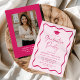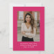 Celebre seu formando com este convite de festa de formatura na moda, com um boné de formatura clássico no topo e "Festa de formatura" em um roteiro elegante cor-de-rosa em um fundo de rosa claro. O nome do formando e os detalhes da festa são realçados dentro de um quadro ondulado rosa-tendência, adicionando um toque retrorreflector divertido. O verso mostra a foto do mais velho do formando com espaço para o seu nome, escola e ano de graduação, fazer-a como uma marca única e personalizada. Perfeito para formandos segundos graus ou universitários, este design moderno, mas nostálgico, dá o tom para uma celebração memorável.