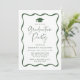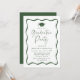 Convide amigos e família para comemorar seu formando com este convite para festas de formatura moderno, apresentando um boné de formatura clássico no topo e "Festa de formatura" mostrada em um roteiro na moda verde em um fundo branco. O nome do formando e os detalhes da festa são realçados por um quadro de onda verde-arrojado, adicionando um toque retrô divertido ao design elegante. O verso mostra a foto do mais velho do formando com espaço para o seu nome, escola e ano de graduação, criando uma manutenção personalizada. Perfeito para formandos segundos graus ou universitários, este convite combina elegância com uma nova sensação contemporânea de uma celebração inesquecível.