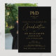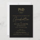 Este convite de festa de formatura de doutorado elegante preto e dourado pode ser personalizado com seus detalhes de graduação e uma foto no sentido inverso. Projetado por Thisnotme©