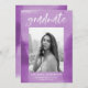 Convide convidados para sua festa de formatura em estilo com nossos convites para festa de formatura de fotos de Wash em Aquarela Roxa Moderna. Os convites para a festa de formatura de tendências exibem a foto do formando enquadrada em um fundo de lavagem de cor d'água roxa e em negrito plano. A palavra "formando" é exibida no topo do convite em um script de aquarela branco, com o nome do formando, o nome da escola e o ano de classe na parte inferior. O convite reverte para apresentar os detalhes do seu partido em texto branco contra um fundo de cor d'água roxa.