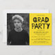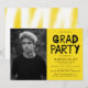 A festa de formatura moderna convida a apresentar a foto do formando com "Formando" em um estilo de tipografia de tinta preta contra fundo amarelo ou cor de sua escolha. Personalize o convite adicionando o nome do formando, o nome da escola, o ano de graduação e os detalhes da festa de formatura. O convite se inverte para exibir um design de tinta amarelo e branca para spray.