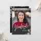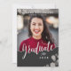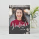 Convite para Festa de formatura de Fotos de Script com a foto do formando na frente e uma segunda foto do formando na parte traseira. O Formando de palavras com script e as formas de hexágono de shimmer prateado tornam este convite de formando elegante e chic.Comemore seu formando com estilo com estes convites de formatura elegantes.