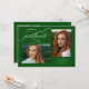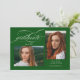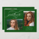Green Elegant Script 3 Photo Festa de formatura Invitation apresenta um belo e elegante roteiro sobre sua foto. Os detalhes da sua festa e fotos estão no verso.