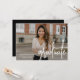 Convite de festa de formatura moderno com sua foto horizontal na frente com "formando" exibido em uma camada branca de script manuscrito. Personalize a frente do convite para festa de formatura fotográfica com o nome do formando, o nome da escola e o ano de graduação. O simples convite de festa de formatura reverte para exibir os detalhes de sua festa em letras brancas com um fundo preto sólido. O convite para festa de formatura de fotos é perfeito para formandos de segundo grau e de faculdade!