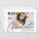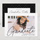 Convide convidados para comemorar a formatura com nossos convites para festa de formatura de fotos modernos. Os convites da festa de formatura de tendências apresentam a foto do formando com "Formando" em uma camada preta de script de caligrafia moderna. Personalize a frente dos convites adicionando o nome do formando, o nome da escola e o ano de graduação. O convite reverte para exibir os detalhes da sua festa de formatura e um padrão geométrico preto e branco pontilhado em tendência.