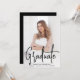 Convite de festa de formatura moderno com sua foto vertical na frente com "Formando" exibido em uma cobertura de script preto manuscrita. Personalize a frente do convite para festa de formatura fotográfica com o nome do formando, o nome da escola e o ano de graduação. O simples convite de festa de formatura reverte para exibir os detalhes de sua festa em letras brancas com um fundo preto sólido. O convite para festa de formatura de fotos é perfeito para formandos de segundo grau e de faculdade!