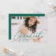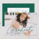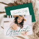 Convide convidados para comemorar o formando com nossos convites para a graduação em na moda. Os convites para a graduação apresentam a foto do formando com "Formando" em uma cobertura verde moderna de roteiro de caligrafia. Personalize a frente do convite para a formatura moderna adicionando o nome do formando, o nome da escola e o ano de formatura. O convite reverte para exibir os detalhes da sua festa de formatura e um padrão geométrico verde e branco pontilhado.