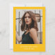 Celebre sua formando com este convite para festa de formatura de Arco Amarelo Moderno! Apresentando um arco amarelo ousado que enquadra os detalhes da festa em um fundo branco, este design na moda mostra uma fonte de script amarelo tendencioso para um toque moderno e elegante. O verso exibe a foto vertical do mais velho do formando, com espaço para personalizar o nome da escola e o ano de graduação. Perfeito para festas de segundo grau e formandos, este convite chico define o palco para uma celebração inesquecível!