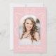 Celebre a conquista do seu formando com este charmoso convite à festa de formatura, com a foto do formando mostrada dentro por um belo quadro de arco, acentuado por um arco branco desenhado à mão e uma fita desenhada à mão sobre um fundo cor-de-rosa suave. O nome do formando é apresentado num guião branco e branco, com a sua escola e o seu ano de graduação indicados abaixo para um toque personalizado. O verso do convite inclui todos os detalhes importantes da festa de formatura, garantindo que seus convidados tenham tudo o que precisam para celebrar. Com a sua perfeita mistura de design moderno e elegância eterno, este convite é uma forma deliciosa de anunciar o dia especial do seu formando!